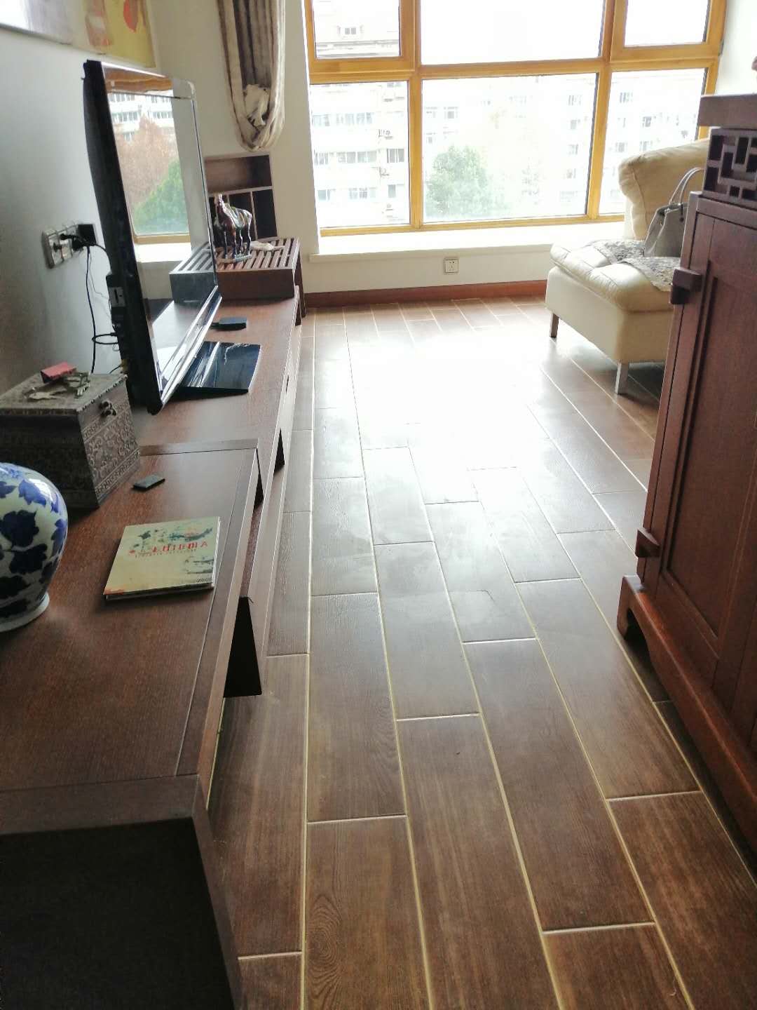 下面,福利來了,小編剛剛拍攝的一組納米陶瓷泥產(chǎn)品在木紋磚上的施工效果,業(yè)主家里雖然是老房翻新,瓷磚貼了十幾年了,但做了瓷磚美縫以后,簡直太美了!